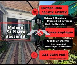 Charmante Maison - 92 m² Saint Pierre MAXImmo vous propose cette maison traditionnelle de 2020, située dans un cadre de vie paisible et ensoleillé. Avec ses 92 m² habitables et 111 m² au sol, cette propriété offre un espace de vie généreux. Au rez-de-chaussée, vous trouverez un séjour de 23 m², parfait pour des moments conviviaux en famille ou entre amis. La cuisine aménagée est pratique et fonctionnelle. La maison comprend également 3 chambres, une salle de bains et une salle d'eau, ainsi qu'un WC séparé. De plus le bien dispose d'un studio indépendant d'environ 20m². L'extérieur est tout aussi agréable avec un terrain de 210 m² pour vos moments de détente. Deux terrasses de 35 m² chacune vous permettront de profiter pleinement des beaux jours. Un stationnement intérieur pour 2 véhicules est également disponible. Bien que l'intérieur soit à rafraîchir, cette maison offre un excellent potentiel pour créer un foyer à votre image en temps que résidence principale ou pour tout investisseur souhaitant un bien offrant des possibilités locatives (collocation) avec rendement assuré. À proximité, vous trouverez plusieurs commodités pratiques, dont des écoles, des commerces, des transports en commun et le CHU (3 minutes en voiture). Ne manquez pas l'opportunité à saisir sur un secteur recherché. Contactez-moi dès aujourd'hui pour une visite ! Prix TTC et Honoraires à charge vendeur TTC Mandat n° 13 132 Réseau MAXImmo - Pour plus de renseignements contactez Fabrice au 06 92 77 74 19 ou par mail à [email protected] Plus d'informations et consultation de nos tarifs sur www.maximmo.re Les informations sur les risques auxquels ce bien est exposé sont disponibles sur le site Géorisques : www.georisques.gouv.fr' Honoraires à la charge du vendeur. Non soumis au DPE. Les informations sur les risques auxquels ce bien est exposé sont disponibles sur le site Géorisques : georisques.gouv.fr. Votre conseiller MAXImmo : Fabrice NICOLAS Agent commercial (Entreprise individuelle) RSAC 79309257800020