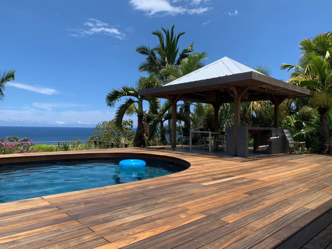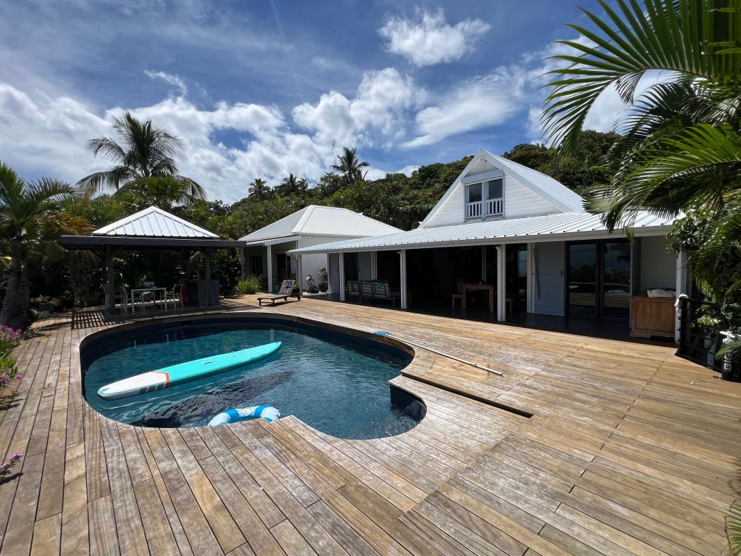 L'agence ORPI MVS Saint Pierre à l'honneur de vous proposer en exclusivité un ensemble immobilier exceptionnel : Sur un superbe parc paysagé de 3000m2, entièrement constructible, dans le quartier le plus recherché et calme de Grand Bois, à Saint Pierre, 2 maisons rénovées en 2021, une grande piscine au sel et son deck rénovés en 2025, 2 varangues, un kiosque aménagé, 2 terrasses en bois, le tout avec une vue à 180° sur le lagon de Grand Bois, ses couchés de soleil et ses baleines !!! La maison principale d'environ 120m2 comprend : - un grand espace de vie avec séjour, cuisine ouverte, et varangue de 35m2, - 3 chambres au rez-de-chaussée, - 2 salles d'eau - une mezzanine pouvant servir de bureau, espace de jeu ou chambre supplémentaire - un immense garage de 100m2 en sous-sol avec prise pour véhicule électrique. La seconde maison de 80m2 comprend : - un SAS fermé avec porte d'entrée et baies vitrées reliant les 2 maisons - un espace de vie avec cuisine ouverte et accès à sa varangue de 13m2 - 2 suites parentales L'ensemble dispose de climatisation, de 2 chauffe-eau solaires, de panneaux photovoltaïques avec batteries permettant une autonomie énergétique et d'une phytoépuration Contactez-nous pour découvrir ce havre de paix tropical affiché au prix de 1 372 000 € HAI, honoraires à la charge du vendeur. Référence agence : 6622