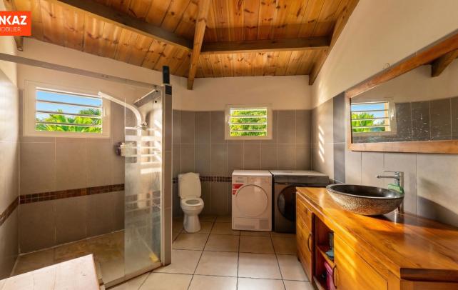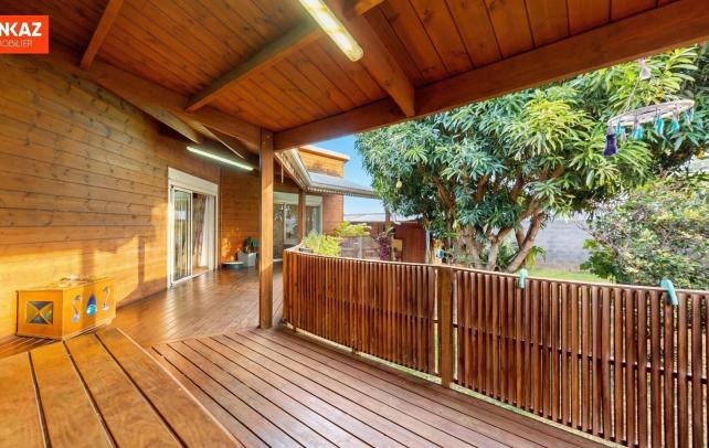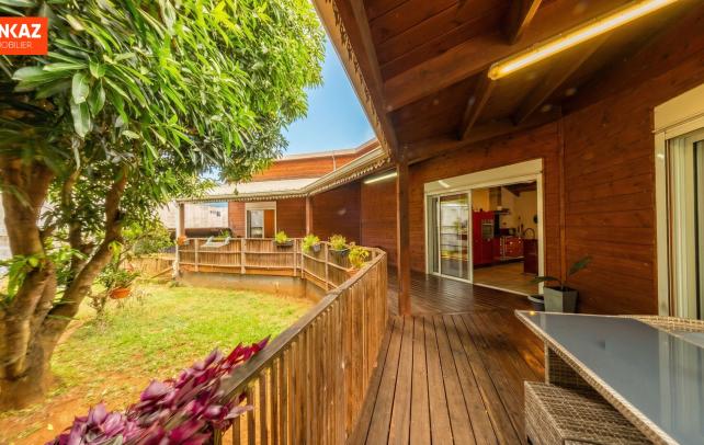 Maison bois 3 chambres, varangue en L sur jardin - Saint-Pierre secteur Condé Charpente apparente, varangue en L qui enveloppe le jardin, manguiers installés : cette maison bois de 2010 articule tout autour de sa varangue et de son jardin. La maison fait 107 m² sur plain-pied. Le séjour-cuisine de 52 m² est généreux, traversant, avec accès direct sur la varangue. Trois chambres : 11, 11 et 15 m² . Salle d'eau spacieuse avec douche. C'est dehors que le bien se révèle vraiment. La varangue couverte de 42 m² court en L autour du séjour et s'ouvre sur un jardin planté d'arbres fruitiers. Un abri voiture couvert complète l'ensemble. Secteur Condé, accès direct à la 4 voies, centre de Saint-Pierre à quelques minutes. Honoraires à la charge exclusive du vendeur. Les informations sur les risques auxquels ce bien est exposé sont disponibles sur le site géorisques : www.georisques.gouv.fr. Contactez-nous au +262 262 490 490.