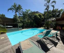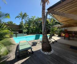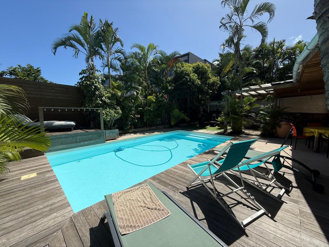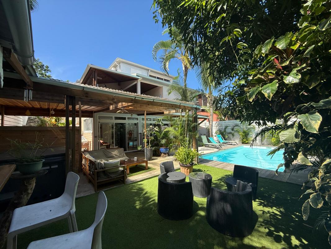 ORPI vous propose cette villa aux volumes généreux, située dans le secteur recherché de Terre Sainte, à proximité des commerces, des commodités, des axes principaux et du CHU. Édifiée sur une parcelle de plus de 450 m², cette maison d'environ 185 m² habitables est répartie sur trois niveaux et offre de nombreuses possibilités d'agencement, idéale pour une grande famille, une activité de location, ou un projet à double habitation. Au premier niveau Une suite parentale, une cuisine, un séjour/salle à manger ouvrant sur une terrasse avec piscine au sel. Une seconde salle d'eau avec toilettes est également présente à ce niveau, dédiée à l'usage de l'espace piscine. Vous y trouverez également un espace pouvant servir de débarras ou de rangement. À l'étage Un second séjour, une seconde cuisine, deux chambres avec chacune leur salle d'eau, des toilettes séparées, et une belle terrasse couverte. Au dernier niveau Deux chambres, une salle d'eau avec toilettes, ainsi qu'une pièce complémentaire pouvant servir de dressing, bureau ou salle de jeux. À l'extérieur Une grande terrasse couverte, une cuisiné d'été, un jacuzzi, et un espace agréable propice aux moments festifs ou de détente en famille. Un abri de jardin complète l'ensemble et peut servir de zone de stockage. Informations complémentaires : • Trois places de stationnement • Chauffe-eau solaire • Clim et brasseurs d'air • Tout-à-l'égout et fosse septique • Taxe foncière : 3179€ Prix FAI : 675 000€, les honoraires sont à la charge du vendeur. Une maison familiale, fonctionnelle et chaleureuse, à découvrir sans tarder ! Contactez-nous vite pour organiser une visite ! Référence agence : 6475