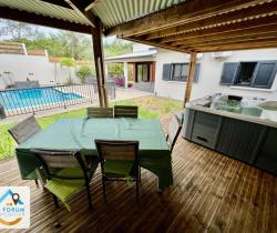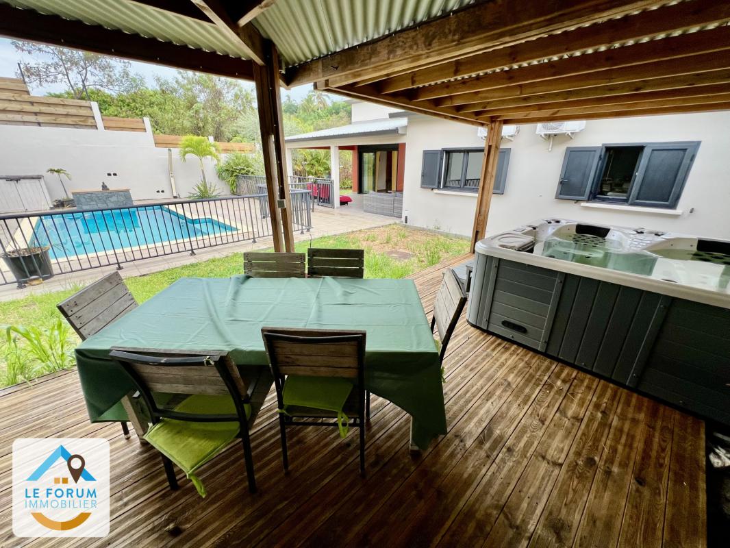 SAINT PIERRE 97410 - Magnifique villa F4 de 2017, fonctionnelle et parfaitement entretenue située dans un environnement recherché sur environ 430 m2 de terrain plat et clôturé. Côté jour vous serez accueillis par une vaste pièce à vivre d'environ 42,22 m2 avec cuisine aménagée-équipée ouverte sur la varangue d'environ 25,92 m2 depuis laquelle vous aurez un accès direct au jardin. Le coin nuit dispose de 3 chambres spacieuses et climatisées, d'un cellier / buanderie et d'une lumineuse salle de bains / salle d'eau. Afin de profiter de l'extérieur, une piscine au sel et une cuisine d'environ 28,95 m2 sont à votre disposition. Un jacuzzi vient compléter cet espace de détente. Garage d'environ 49 m2 attenant à la villa. De belles prestations pour cette villa très agréable à vivre qui ne manquera pas de vous séduire. À VISITER! Ref 5588 Les informations sur les risques auxquels ce bien est exposé sont disponibles sur le site Géorisques : www.georisques.gouv.fr Les informations sur les risques auxquels ce bien est exposé sont disponibles sur le site géorisques : www.georisques.gouv.fr