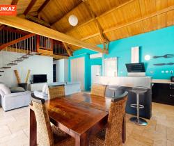 Varangue XXL , piscine à Saint-Pierre (Condé) Le vrai plus ici : la varangue XXL et la piscine à deux pas du salon. À l'intérieur, l'espace de vie se démarque par sa belle hauteur sous plafond et sa charpente en bois apparente, prolongée par la mezzanine. À Saint-Pierre, secteur Condé, cette maison de 2009 propose 121,55 m² habitables sur un terrain de 540 m². La pièce principale réunit séjour et cuisine (env. 45 m²), avec une circulation simple et des volumes agréables. Côté nuit : 3 chambres, une salle de bains, une salle d'eau et un WC séparé. Les combles / mezzanine (env. 24 m²) offrent un espace en plus, parfait pour un bureau, un coin lecture ou une salle de jeux. Dehors, on profite vraiment : varangue en bois (env. 48 m²), piscine, et cuisine extérieure (env. 11 m²) .Tout-à-l'égout. Honoraires uniquement à la charge du vendeur. Les informations sur les risques auxquels ce bien est exposé sont disponibles sur le site géorisques : www.georisques.gouv.fr . Pour visiter, contactez l'agence au +262 262 490 490.