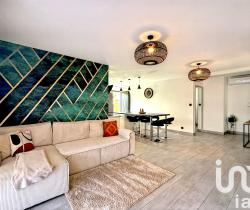 Vaste pièce à vivre traversante avec cuisine équipée et ouverte
