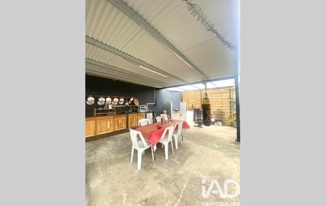 Un extérieur sans vis à vis avec un coin repas, une cuisine, et plusieurs stationnements.