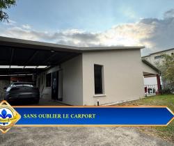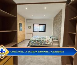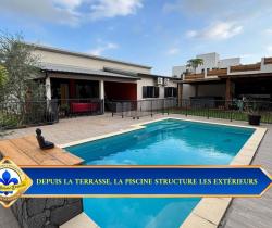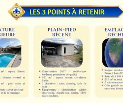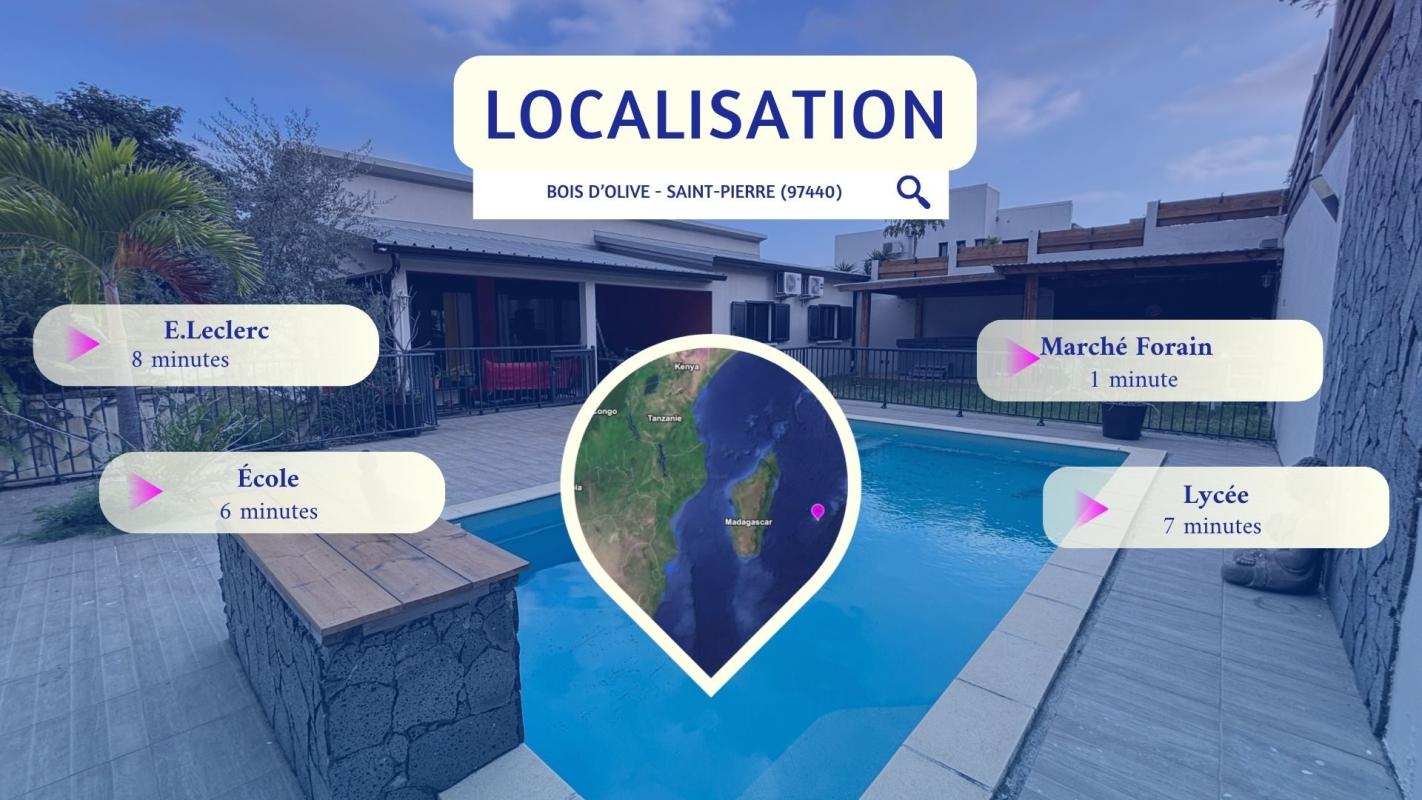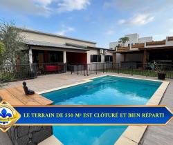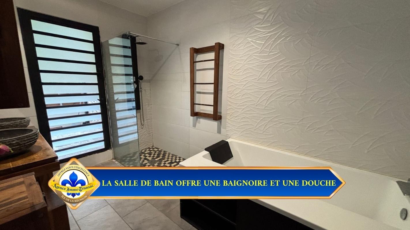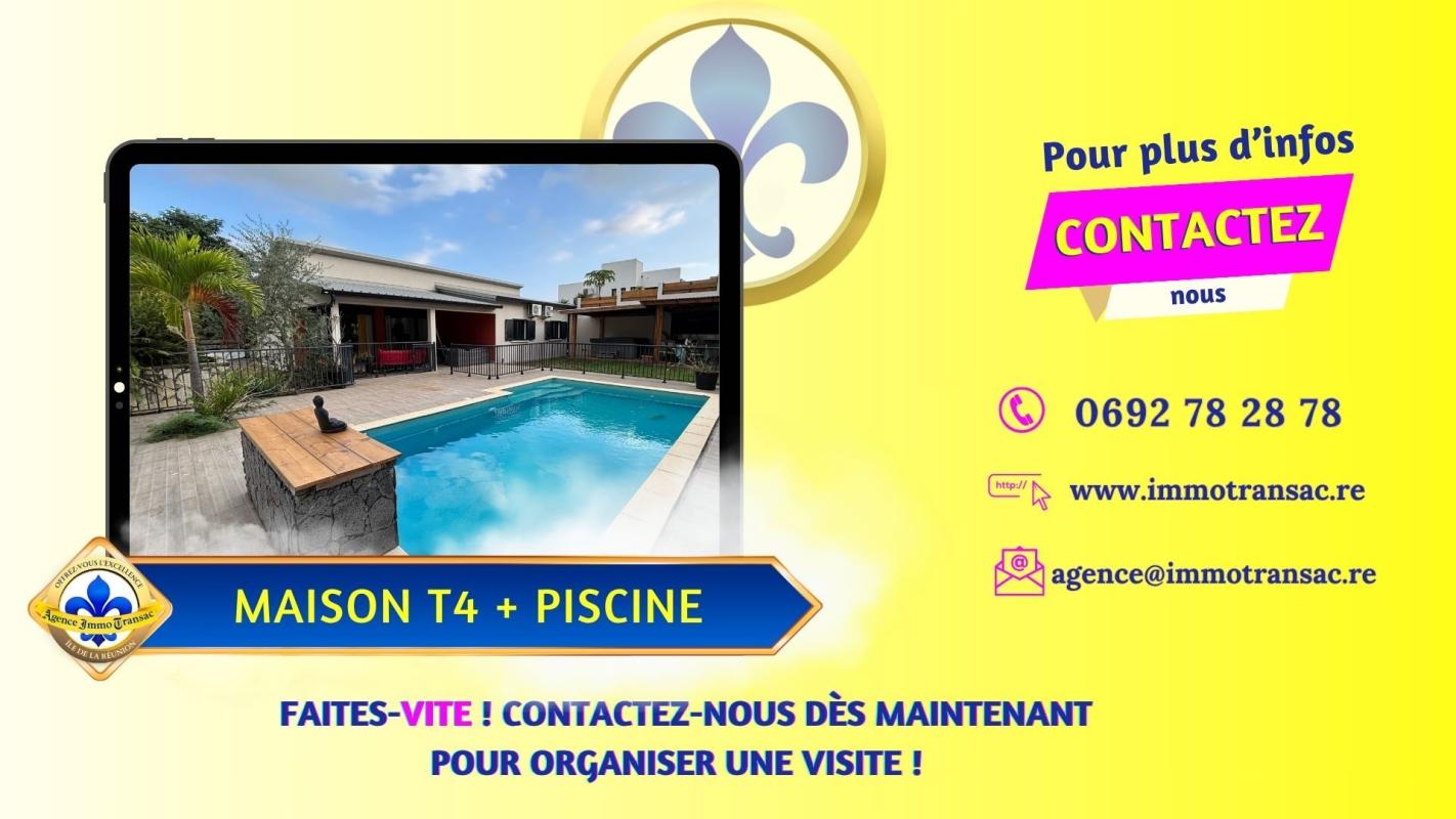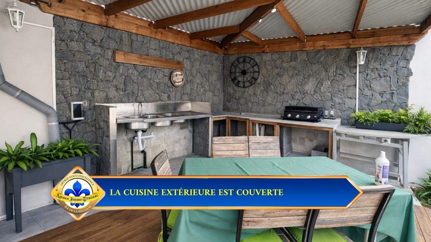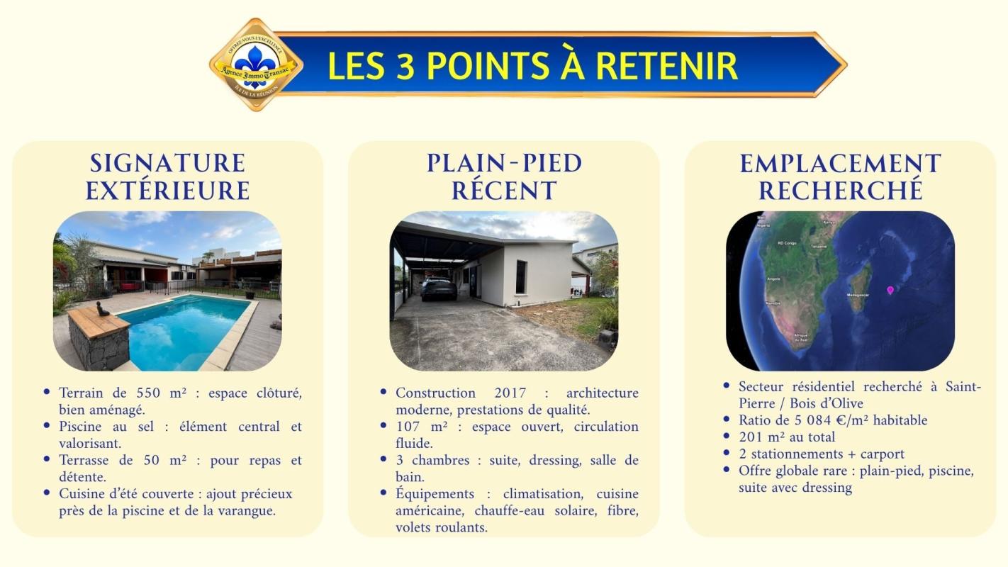 Vous cherchez une VILLA à vendre à BOIS D'OLIVE à Saint-Pierre, avec piscine au sel et vraie vie dedans-dehors ? . Cette villa de plain-pied de 107 m² sur 550 m² de terrain bénéficie de : - PISCINE AU SEL de 7,40 x 4,40 m au coeur des espaces extérieurs. - 3 CHAMBRES de plain-pied, dont une SUITE avec DRESSING traversant. - TERRASSE COUVERTE d'environ 50 m² ouverte sur la piscine. - CUISINE AMÉRICAINE complète et SÉJOUR lumineux de 42 m². - JACUZZI et CUISINE D'ÉTÉ couverte avec barbecue fixe. - CARPORT, GARAGE 44 m², BUANDERIE et CELLIER. - CLIMATISATION réversible, FIBRE, VOLETS roulants, CHAUFFE-EAU solaire et PORTAIL motorisé. . Explorez cette maison dès maintenant en SCANNANT LE QR CODE dans les photos pour un meilleur aperçu. . Pourquoi cette VILLA située dans BOIS D'OLIVE mérite votre attention ? . QUARTIER RÉSIDENTIEL APAISÉ : À Saint-Pierre, dans le secteur recherché de BOIS D'OLIVE, cette villa profite d'un environnement RÉSIDENTIEL avec FAIBLE VIS-À-VIS. La luminosité et la tranquillité perçues renforcent immédiatement le confort du cadre de vie. . VILLA DE PLAIN-PIED RÉCENTE : Construite en 2017, cette villa de PLAIN-PIED offre une circulation fluide entre les espaces jour, nuit et extérieurs. Son agencement de 107 m² favorise une installation simple, sans rupture ni perte de surface. . PISCINE AU SEL CENTRALE : La piscine de 7,40 x 4,40 m s'impose comme le point d'ancrage naturel des extérieurs et relie la terrasse à la maison. Elle donne à cette VILLA à Saint-Pierre une vraie vie DEDANS-DEHORS. . TERRASSE ET VARANGUE DE 50 M² : La varangue au mur rouge terracotta prolonge le séjour vers la piscine. Elle accueille un salon extérieur et offre un espace protégé pour les repas et la détente toute l'année. . JARDIN TROPICAL AVEC BASSIN : Le jardin paysager avec son bassin décoratif en pierre naturelle et ses palmiers apporte une touche zen. Le terrain de 550 m² est bien réparti entre stationnement, détente et réception. . PIÈCE DE VIE OUVERTE DE 42 M² : Le séjour s'organise en continuité directe avec la cuisine et les ouvertures sur la terrasse. La sensation d'ESPACE et de LUMINOSITÉ accompagne chaque moment de la journée. . CUISINE AMÉRICAINE COMPLÈTE : La cuisine avec îlot central en granit noir, hotte inox et réfrigérateur américain permet de cuisiner sans se couper du séjour. Son implantation favorise les échanges et les repas partagés. . CUISINE D'ÉTÉ ET JACUZZI : L'espace extérieur couvert avec barbecue fixe et jacuzzi est pensé pour les repas et les journées prolongées autour de la piscine. Il ajoute une dimension de RÉCEPTION très recherchée. . CARPORT ET GARAGE DE 44 M² : Le carport et le garage complètent la maison avec 2 stationnements et un volume de rangement supplémentaire, sans empiéter sur les espaces de détente. . SÉJOUR TOURNÉ VERS L'EXTÉRIEUR : Les baies vitrées coulissantes prolongent naturellement le séjour vers la terrasse et la piscine. Le regard circule librement et agrandit visuellement l'espace intérieur. . SALLE DE BAINS COMPLÈTE : La salle de bain réunit BAIGNOIRE et DOUCHE À L'ITALIENNE dans un volume confortable et lumineux. Elle répond avec efficacité aux besoins d'une vie de famille. . SUITE AVEC DRESSING TRAVERSANT : La chambre principale se distingue par un espace plus généreux et un dressing traversant en bois clair. Un mur en parement pierre apporte du caractère e...