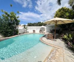 Alter Immobilier vous propose cette villa T4 à la convenance. Idéalement située proche du sentier littoral de Sainte-Marie, cette villa comprend: 1 entrée, 1 grand séjour avec varanda fermée avec vue mer pour un total d'environ 51m², 1 cuisine ouverte, 1 WC, 1 salle de bains avec douche et baignoire, 2 chambres de plus de 10m² avec climatisation, 1 bureau ouvert possible de transformer en chambre, 1 suite parentale d'environ 42m² avec dressing et salle d'eau et 1 garage. Il est possible de garer au moins 4 voitures dans l'allée. Vous pourrez profiter de la piscine avec son coin kiosque pour manger. La villa est équipée du tout à l'égout. Montant taxe foncière: 2 750€ Venez vite visiter!! NON SOUMIS AU DPE Pour visiter, merci de contacter notre agent immobilier indépendant EI Julien GARANDEAU, au 06 92 73 82 25 et/ou par mail à [email protected] Les informations sur les risques auxquels ce bien est exposé sont disponible sur le site Géorisques : www.georisques.gouv.fr