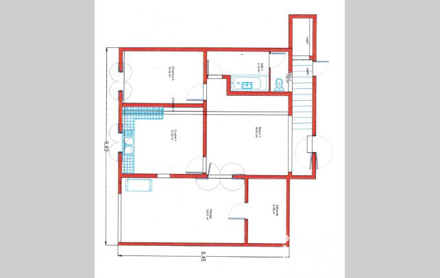 3 chambres, un grand séjour lumineux, 1 salles de bains avec baignoire, une cuisine fonctionnelle.