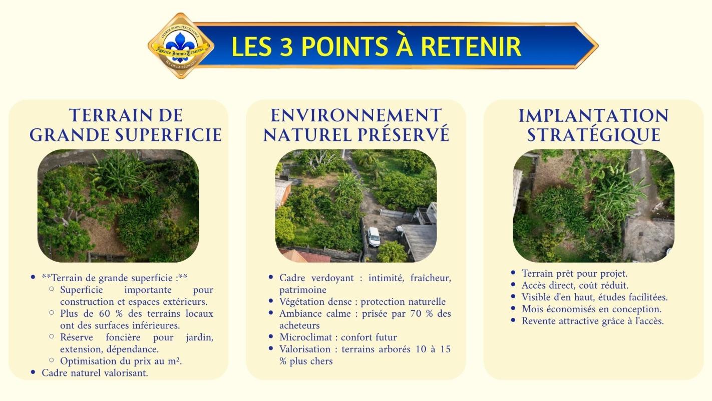 Vous cherchez un TERRAIN à vendre à SAINT-DENIS - SAINT-FRANÇOIS, dans un QUARTIER CALME avec VUE MER et FORT POTENTIEL ? . Ce terrain de 350 m² à Saint-Denis bénéficie de : - EMPLACEMENT RECHERCHÉ dans le quartier résidentiel de Saint-François - VUE MER ET PANORAMIQUE, rare sur le secteur Nord - ENVIRONNEMENT CALME ET VÉGÉTALISÉ, propice à une vie sereine - SURFACE MAÎTRISÉE DE 350 M², idéale pour un projet résidentiel - PROXIMITÉ DES SERVICES : écoles, transports et hôpitaux accessibles rapidement. . Demandez la brochure de ce terrain dès maintenant en SCANNANT LE QR CODE dans les photos pour un meilleur aperçu. . Pourquoi ce terrain situé à Saint-François mérite votre attention ? . VUE AÉRIENNE DU TERRAIN ARBORÉ : Le terrain de 350 m² se distingue par une lecture claire de la parcelle et une végétation existante qui structure naturellement les espaces. Cette configuration facilite la projection immédiate d'un projet de construction cohérent et maîtrisé. . DÉGAGEMENT VISUEL ET VUE MER : La parcelle profite d'une vue mer associée à un dégagement panoramique, apportant une réelle sensation d'espace et une valeur durable au projet. Cet atout reste un critère déterminant sur le marché du Nord de La Réunion. . ENVIRONNEMENT NATUREL APAISANT : L'environnement végétalisé crée une atmosphère calme et préservée, tout en limitant les vis-à-vis directs. Un cadre idéal pour concevoir une maison tournée vers l'extérieur et la tranquillité. . EMPLACEMENT STRATÉGIQUE À SAINT-DENIS : Situé dans le quartier de Saint-François, ce terrain combine calme résidentiel et proximité immédiate des commodités essentielles. Un équilibre recherché pour une résidence principale durable. . POTENTIEL DE CONSTRUCTION MAÎTRISÉ : Avec ses 350 m², le terrain permet d'envisager une construction fonctionnelle sans contraintes excessives, tout en maîtrisant les coûts globaux du projet. Une surface adaptée aux attentes actuelles des acquéreurs. . TRAVAUX ANTICIPÉS ET BUDGET CLARIFIÉ : La présence d'une fosse septique ancienne implique une mise à niveau de l'assainissement, permettant d'anticiper clairement le budget dès la conception du projet. . ZONAGE UC : Situé en zone UC, ce terrain est adapté à un projet de construction résidentielle avec des possibilités d'aménagement cohérentes selon la réglementation en vigueur. . DEMANDEZ NOTRE BROCHURE ? RÈGLEMENTS ET PLANS : Pour plus de détails, demandez la brochure en cliquant sur le lien ou en scannant le QR code. Elle inclut les plans, règlements d'urbanisme, coordonnées GPS et informations clés pour votre projet. . CONTACTEZ-NOUS dès maintenant pour découvrir tout le potentiel de ce terrain à Saint-Denis. Profitez de notre présentation vidéo en SCANNANT LE QR CODE dans les photos pour un meilleur aperçu. . Vous avez le projet de VENDRE À LA RÉUNION ? Découvrez notre ESTIMATION EN LIGNE GRATUITE en 3 clics. . Grâce à notre EXPERTISE RECONNUE et notre MARKETING IMPACTANT, AGENCE IMMO TRANSAC vous accompagne pour vendre vite et au MEILLEUR PRIX. . Madame L. R. : « Un accompagnement clair et professionnel du début à la fin. Une agence à l'écoute et très efficace. » . Offrez-vous l'excellence immobilière à La Réunion avec AGENCE IMMO TRANSAC. Votre Allié Immobilier Réunionnais. Honoraires à la charge du vendeur. Les informations sur les risques auxquels ce bien est exposé sont disponibles ...